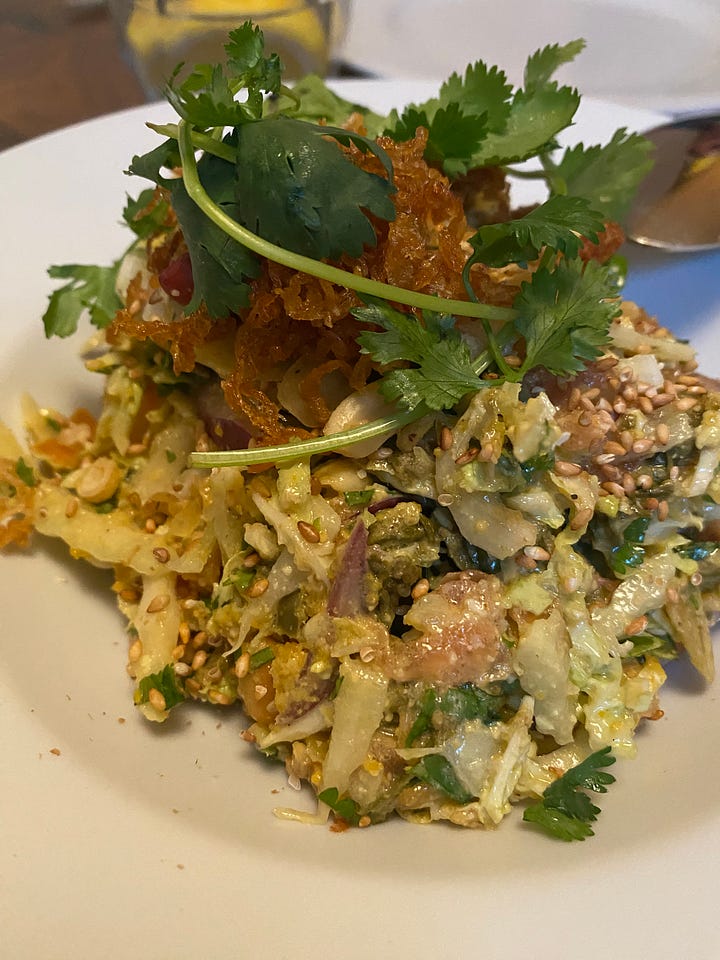 The Dutchess. Oh my god, this place! First, it’s CUTE! Second, they offer fresh baked breads and pastries as well as coffee and teas for brunch, but really you must go for dinner. Reservations are recommended. They make almost everything in-house including the most delicious sourdough naan I’ve had in my life. The crispy, chewy delight is served with their homemade garlic butter and honestly I could have just eaten that with some of their small-batch cocktails. Everyone ate it up and ordered more (thus, no photos!) as we looked over the menu to order entrees. It’s a good place for vegetarians and offers vegan options too like the tea leaf salad (fermented tea leaves, cabbage, heirloom tomatoes, Burmese nut mix). Make sure to try one of their seasonal desserts. We had the coconut creme brûlée with lemon verbena and Queen of the South Tarte. Chef Saw Naing and Pastry Chef Kelsey Brito head this Michelin-star gem.